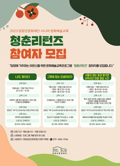 [¹Ìµð¾îÀü³² Á¦°¥´ëÁ¾ ±âÀÚ](Àç)´ã¾ç±º¹®ÈÀç´ÜÀº Áö³ 6ÀϺÎÅÍ ¿À´Â 20ÀϱîÁö ½Ã´Ï¾î ¹®È¿¹¼ú±³À° ÇÁ·Î±×·¥¡®Ã»ÃḮÅÏÁÂü¿©ÀÚ¸¦ ¸ðÁýÇÑ´Ù°í ¹àÇû´Ù. Áö¿ª¹ÎÀ» ´ë»óÀ¸·Î ÇÑ ¸ÂÃãÇü ¹®È¿¹¼ú±³À° ÇÁ·Î±×·¥¡®Ã»ÃḮÅÏÁ´Â ¹®È¿¹¼ú ¡¦
