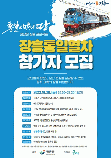 [¹Ìµð¾îÀü³² Á¦°¥´ëÁ¾ ±âÀÚ]ÀåÈﱺÀÌ ¿À´Â 10¿ù 20ÀÏ Ãâ¹ßÇϴ¡®Á¤³²Áø ÀåÈï ÅëÀÏ¿Â÷¡¯Å¾½Â°´À» ¸ðÁýÇÑ´Ù. ¡®Á¤³²Áø ÀåÈï ÅëÀÏ¿Â÷¡¯´Â 10¿ù 20ÀÏ ¿ÀÀü ÀåÈﱺ¹Îȸ°üÀ» Ãâ¹ßÇØ ÈÞÀü¼± Àα٠µµ¶ó»ê¿ª±îÁö ¿îÇàÇÑ´Ù. ¿Â÷ ¿îÇà ³ë¼±Àº ±¤¡¦