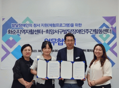 [¹Ìµð¾îÀü³² Á¦°¥´ëÁ¾ ±âÀÚ]ȼø±º¿¡¼ À§Å¹ Áö¿øÇϴ ȼøÁö¿ªÀÚȰ¼¾ÅÍ¿¡¼´Â Áö³ 30ÀÏ ¹ß´ÞÀå¾ÖÀÎÀÇ Á¤¼ Áö¿ø ÇÁ·Î±×·¥ °³¹ß¡¤ÁøÇàÀ» À§ÇØ ±¤ÁÖ±¤¿ª½Ã ¼±¸¿¡ ¼ÒÀçÇÑ Èñ¸Á ¼±¸ ¹ß´ÞÀå¾ÖÀÎ ÁÖ°£ Ȱµ¿¼¾ÅÍ¿Í ¾÷¹«Çù¾à(MOU)À» ÁøÇàÇß´Ù¡¦
