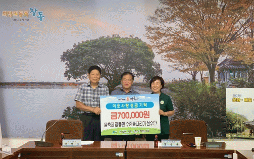 [¹Ìµð¾îÀü³² Á¦°¥´ëÁ¾ ±âÀÚ]ÀåÈﱺ À嵿¸éÁö¿ª»çȸº¸ÀåÇùÀÇü´Â 30ÀÏ ¡®Á¤³²Áø ÀåÈï ¹°ÃàÁ¦¡¯¿¡ Âü¿©ÇÑ À嵿¸é ¼öÁßÁٴٸ®±â ¼±¼ö´ÜÀÌ ¼º±Ý 70¸¸¿øÀ» ±âŹÇß´Ù°í ÀüÇß´Ù. À嵿¸é ¼öÁßÁٴٸ®±â ¼±¼ö´ÜÀº ¿ÃÇØ ¹°ÃàÁ¦ ±â°£ Áß À¾¸é´ëÇ× ¼ö¡¦