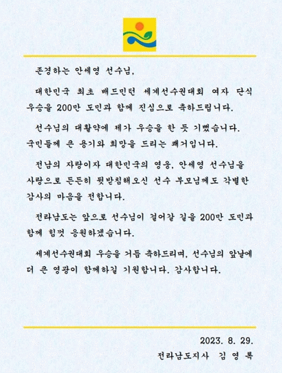 [¹Ìµð¾îÀü³² Á¦°¥´ëÁ¾ ±âÀÚ]Àü¶ó³²µµ ³ªÁÖ Ãâ½Å ¾È¼¼¿µ ¼±¼ö°¡ µ§¸¶Å© ÄÚÆæÇϰտ¡¼ ¿¸° 2023 ¼¼°è°³Àιèµå¹ÎÅϼ±¼ö±Ç´ëȸ ¿©ÀÚ ´Ü½Ä¿¡¼ ±Ý¸Þ´ÞÀ» ȹµæÇÏ°í ±ÝÀÇȯÇâÇß´Ù. 1977³â ½ÃÀÛÇÑ ¼¼°è¼±¼ö±Ç´ëȸ¿¡¼ Çѱ¹ ¼±¼ö°¡ ´Ü½Ä Á¾¸ñ¿¡¼¡¦