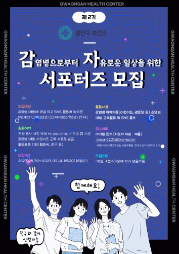 [¹Ìµð¾îÀü³² ±èÁ¤¿ì ±âÀÚ]±¤ÁÖ ±¤»ê±¸´Â ½Ã¹ÎÀÇ °¨¿°º´ ¿¹¹æ ÀÎ½Ä ÁõÁøÀ» À§ÇØ 2±â ¡®°¨ÀÚ(°¨¿°º´À¸·ÎºÎÅÍ ÀÚÀ¯¸¦) ¼Æ÷ÅÍÁî(È«º¸´Ü)¡¯¸¦ ¸ðÁýÇÑ´Ù°í ¹àÇû´Ù. ´ë»óÀº °¨¿°º´ ¿¹¹æ¿¡ °ü½ÉÀÌ ÀÖ°í, »çȸ°ü°è¸Á¼ºñ½º(SNS) Ȱ¿ëÀÌ ´É¼÷ÇÑ 1¡¦