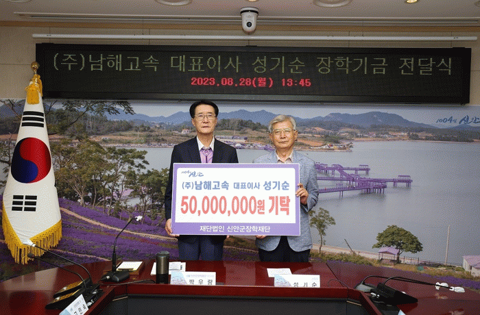 [¹Ìµð¾îÀü³² °í±Ô¼® ±âÀÚ] (ÁÖ)³²Çذí¼Ó ¼º±â¼ø ´ëÇ¥ÀÌ»ç´Â Áö³ 28ÀÏ ½Å¾È±ºÃ»À» ¹æ¹®ÇÏ¿© ½Å¾È±ºÀåÇÐÀç´Ü¿¡ 5õ¸¸ ¿ø ±âŹÀ» ¾àÁ¤Çß´Ù. (ÁÖ)³²Çذí¼ÓÀº 1955³â ¼³¸³ ÀÌ·¡ ÄèÀûÇÏ°í ¾ÈÀüÇÑ ¿îÇ×À» ¸ñÇ¥·Î 68³â°£ ½Å¾È±º µµ¼ Áö¿ª°ú Á¦¡¦