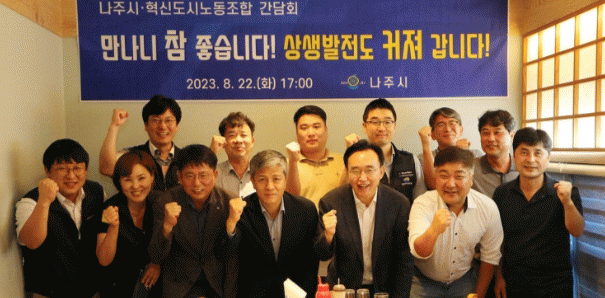 [¹Ìµð¾îÀü³² Á¦°¥´ëÁ¾ ±âÀÚ]À±º´Å ³ªÁÖ½ÃÀåÀÌ ±¤ÁÖ¡¤Àü³² °øµ¿ Çõ½Åµµ½Ã³ëµ¿Á¶ÇÕ°ú »ì±â ÁÁÀº Çõ½Åµµ½Ã¸¦ À§ÇÑ µ¿¹Ý Çù·ÂÀ» ´ÙÁüÇß´Ù. Àü¶ó³²µµ ³ªÁֽô ÃÖ±Ù À±º´Å ½ÃÀå°ú Çõ½Åµµ½Ã³ëÁ¶¿Í ¼ÒÅë °£´ãȸ¸¦ °¡Á³´Ù°í 28ÀÏ ¹àÇû´Ù. ¡¦