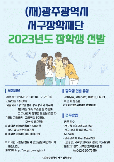 [¹Ìµð¾îÀü³² ±èÁ¤¿ì ±âÀÚ](Àç)±¤ÁÖ±¤¿ª½Ã ¼±¸ ÀåÇÐÀç´ÜÀº Áö¿ª»çȸÀÇ ¹Ì·¡¸¦ À̲ø¾î ³ª¾Æ°¥ ¿ì¼öÀÎÀ縦 ¹ß±¼¡¤À°¼ºÇϱâ À§ÇÑ 2023³â ÀåÇлýÀ» ¸ðÁýÇÑ´Ù. ¼±¸ ÀåÇÐÀç´ÜÀº Áö³ 21ÀÏ Á¦28Â÷ ÀÌ»çȸ¸¦ °³ÃÖÇØ ¿ÃÇØ ÀåÇлý ¸ðÁý°èȹ°ú ¼±¹ß¡¦
