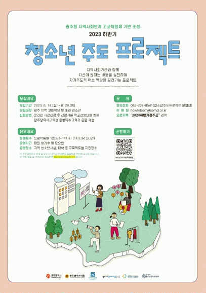 [¹Ìµð¾îÀü³² Á¦°¥´ëÁ¾ ±âÀÚ]±¤ÁÖ±¤¿ª½Ã´Â 2023³â ÇϹݱ⠡®Ã»¼Ò³â ÁÖµµ ÇÁ·ÎÁ§Æ® : ¹è¿òÆ®´Ù¡¯ Âü¿©ÀÚ¸¦ 29ÀϱîÁö ¸ðÁýÇÑ´Ù. ¡®Ã»¼Ò³â ÁÖµµ ÇÁ·ÎÁ§Æ®¡¯´Â û¼Ò³âµéÀÌ ¹è¿ì°í ½ÍÀº °ÍÀ» ´Ù¾çÇÑ Àü¹®±â°ü¿¡¼ Àڱ⸸ÀÇ ¹æ½Ä°ú ¼Óµµ·Î ¹è¿ï¡¦