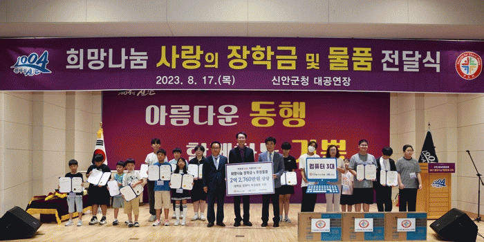 [¹Ìµð¾îÀü³² °í±Ô¼® ±âÀÚ]½Å¾È±ºÀº Áö³ 17ÀÏ »ç)Èñ¸ÁÀ»³ª´©´Â»ç¶÷µé°ú Èñ¸Á³ª´® ÀåÇÐ±Ý ¹× ¹°Ç° Àü´Þ½ÄÀ» Çß´Ù°í ¹àÇû´Ù. À̳¯ Àü´Þ½Ä¿¡´Â 1004¼¶ ½Å¾È±º 20¸íÀÇ ÀåÇлý¿¡°Ô ¿ù 5¸¸ ¿ø¾¿ 2³â°£ 2,400¸¸ ¿ø ÀåÇбݰú 3¸í¿¡°Ô 120¸¸ ¿ø »ó¡¦