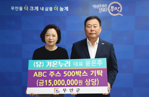 [¹Ìµð¾îÀü³² ±èÆÇ±¹ ±âÀÚ]Àü³² ¹«¾È±ºÀº 17ÀÏ (À¯)´Ù¿Â´©¸®·ÎºÎÅÍ ABCÁÖ½º 500¹Ú½º(1,500¸¸ ¿ø »ó´ç)¸¦ ±âŹ¹Þ¾Ò´Ù. À¯ÇÑȸ»ç °¡¿Â´©¸®´Â ÁÖ·Î ¾çÆÄ, ¾ç¹èÃß µî ¹«¾È Ư»ê¹°À» °¡°øÇÏ¿© ÁóÀ» ¸¸µé¾î ÆÄ´Â À¯ÅëÀü¹® ÆÇ¸Å¾÷ü·Î ¾çÆÄÁó, ¡¦