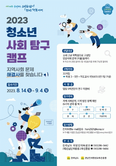 [¹Ìµð¾îÀü³² Á¦°¥´ëÁ¾ ±âÀÚ]Àü¶ó³²µµ´Â °í±³»ýÀÇ »çȸ ¹®Á¦ ÇØ°á ¿¬±¸¿ª·® °È¸¦ À§ÇÑ 2023³â û¼Ò³â »çȸ ޱ¸ Ä·ÇÁ Âü¿©ÀÚ¸¦ ¸ðÁýÇÑ´Ù°í ¹àÇû´Ù. û¼Ò³â »çȸޱ¸ Ä·ÇÁ´Â »çȸ ¹®Á¦¿¡ °ü½É ÀÖ´Â Àü³² °í±³»ý¿¡°Ô Áö¿ª»çȸÀÇ ´Ù¾çÇÑ ¹®¡¦