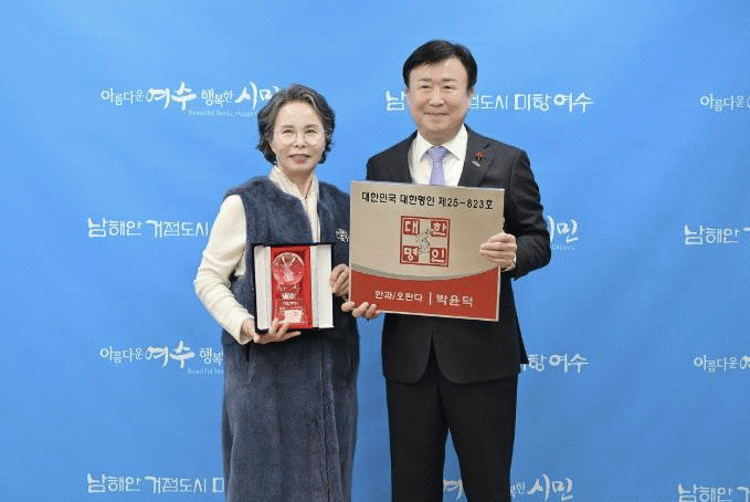 [¹Ìµð¾îÀü³² ÀüÇü¼º ±âÀÚ]¿©¼ö½Ã°¡ ¡®Á¦35Â÷ ´ëÇѹα¹ ´ëÇѸíÀÎ ¼±Á¤¡¯¿¡¼ ÀüÅë ÇѰú¡¤¿À¶õ´Ù ºÐ¾ß 1È£ ¸íÀÎÀ¸·Î ¼Û½Ã¸¶À» ÁÖ½Äȸ»ç ¹ÚÀ±´ö ´ëÇ¥°¡ ¼±Á¤µÆ´Ù°í ¹àÇû´Ù. ´ëÇѹα¹ ´ëÇѸíÀÎÀº ¿ì¸® ¹®È °¡Ä¡¸¦ ¼±¾çÇÏ°í ¹®È¿¹¼ú º¸Á¸°ú¡¦