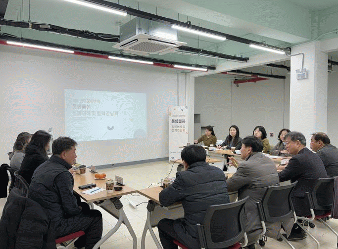 [¹Ìµð¾îÀü³² ÀüÇü¼º ±âÀÚ]¿©¼ö½Ã´Â Áö³ 1¿ù 22ÀÏ »çȸ¿¬´ë°æÁ¦±â¾÷°ú ¸¶À»°øµ¿Ã¼, ¹Î°£´Üü ¹× ÇàÁ¤ °ü°èÀÚ°¡ Âü¼®ÇÑ °¡¿îµ¥ ¡®»çȸ¿¬´ë°æÁ¦ ¿¬°è ÅëÇÕµ¹º½ Á¤Ã¥ ÀÌÇØ ¹× Çù·Â 1Â÷ °£´ãȸ¡¯¸¦ °³ÃÖÇß´Ù°í ¹àÇû´Ù. À̹ø °£´ãȸ´Â ÅëÇÕµ¹¡¦