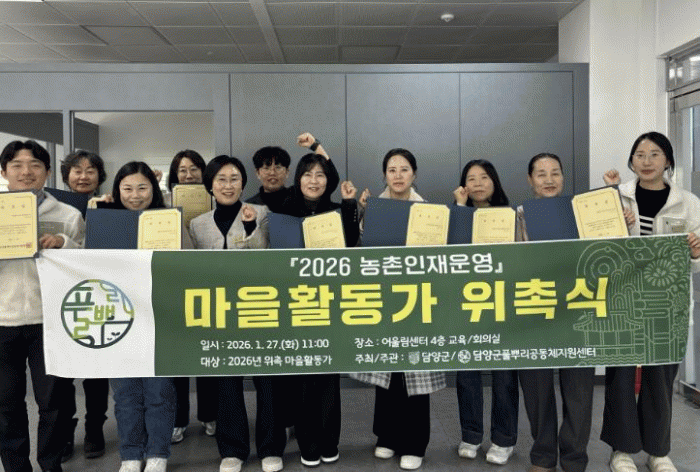 [¹Ìµð¾îÀü³² Á¦°¥´ëÁ¾ ±âÀÚ]´ã¾ç±ºÀÌ ÁֹΠÁÖµµÀÇ ¸¶À»°øµ¿Ã¼ Ȱ¼ºÈ¸¦ À§ÇØ ÇöÀå ¸ÂÃãÇü ¸¶À»È°µ¿°¡ 9ÀÎÀ» À§ÃËÇϰí 2026³â °øµ¿Ã¼ »ç¾÷À» º»°Ý ÃßÁøÇÑ´Ù. ±ºÀº Áö³ 27ÀÏ ´ã¾ç±º ¾î¿ï¸²¼¾ÅÍ¿¡¼ ¡®2026³â ¸¶À»È°µ¿°¡ À§Ã˽ġ¯À» ¿°í,¡¦