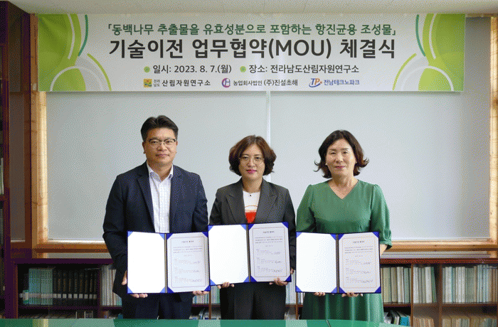 [¹Ìµð¾îÀü³² Á¦°¥´ëÁ¾ ±âÀÚ]Àü³²»ê¸²ÀÚ¿ø¿¬±¸¼Ò´Â Àü³²¿¡ ÀÖ´Â ³ó¾÷ȸ»ç¹ýÀÎ ¢ß´Ù¿ø, ¢ßÁø¼³ÃÊÇØ¿Í Ȳĥ¡¤µ¿¹é³ª¹« °ü·Ã ƯÇã±â¼ú ÀÌÀü Åë»ó½Ç½Ã±Ç °è¾àÀ» Çß´Ù°í ¹àÇû´Ù. °¢°¢ ´Ù¿ø¿¡´Â ¡®È²Ä¥¼ººÐÀÌ Ã·°¡µÈ ½Ò±¹¼ö Á¦Á¶¹æ¹ý¡¯À», Áø¼³¡¦