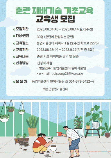 [¹Ìµð¾îÀü³² Á¦°¥´ëÁ¾ ±âÀÚ]ȼø±ºÀÌ Ãá¶õ¿¡ °ü½É ÀÖ´Â ±º¹Î 30¸íÀ» ´ë»óÀ¸·Î ÀÌ´Þ 23ÀϺÎÅÍ ³»´Þ 27ÀϱîÁö 6ÁÖ°£ ¸ÅÁÖ ¼ö¿äÀϸ¶´Ù ³ó¾÷±â¼ú¼¾ÅÍ¿¡¼ Ãá¶õ Àç¹è ±â¼ú ±âÃʱ³À°À» ÃßÁøÇÑ´Ù. À̹ø ±³À°Àº ¹Ý·Á ½Ä¹° Àνݳ¼±, Ãá¶õÀÇ Á¤Ã¼¡¦
