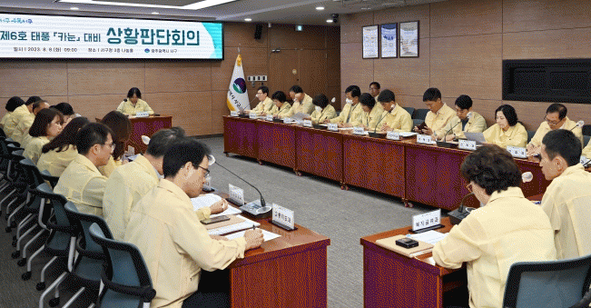 [¹Ìµð¾îÀü³² ±èÁ¤¿ì ±âÀÚ]±¤ÁÖ ¼±¸´Â Á¦6È£ ÅÂdz 'Ä«´«'ÀÇ ºÏ»ó°ú °ü·ÃÇØ 8ÀÏ ¿ÀÀü ±ä±Þ »óȲÆÇ´ÜȸÀǸ¦ °³ÃÖÇÏ°í ±â»ó »óȲÀ» ¿¹ÀÇÁÖ½ÃÇÏ¸ç ½Ã¹ÎÀÇ ¾ÈÀüÀ» ÃÖ¿ì¼±À¸·Î À§ÇèÁö¿ª°ú ½Ã¼³¿¡ ´ëÇÑ »çÀü Á¡°Ë ¹× Á¶Ä¡¿¡ ¸ðµç ÇàÁ¤·ÂÀ» ÁýÁßÇØ¡¦