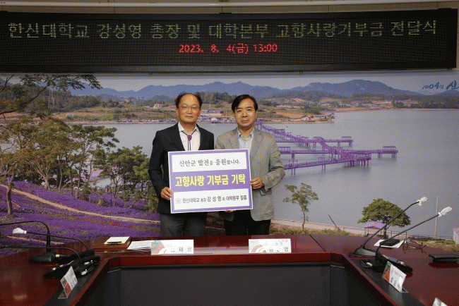 [¹Ìµð¾îÀü³² °í±Ô¼® ±âÀÚ]ÇѽŴëÇб³ °¼º¿µ ÃÑÀå ¹× ´ëÇк»ºÎ Á÷¿ø 10¸íÀº 4ÀÏ ½Å¾È±ºÃ»À» ã¾Æ °íÇâ»ç¶û±âºÎ±ÝÀ» Àü´ÞÇÏ¸ç °íÇâ»ç¶û±âºÎÁ¦ È®»ê¿¡ µ¿ÂüÇß´Ù. °¼º¿µ ÃÑÀåÀº ¡°½Å¾È±ºÀÇ ¾Æ¸§´Ù¿ò¿¡ ¹ÝÇØ ÆÔÅõ¾î¸¦ ÃßÁøÇÏ°Ô µÆÀ¸¸ç, ¿ÃÇØ¡¦