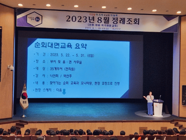 [¹Ìµð¾îÀü³² ±èÆÇ±¹ ±âÀÚ]Àü³² ¹«¾È±ºÀº Ä£ÀýÇàÁ¤ ¼ºñ½º¿¡ ´ëÇÑ Àνĺ¯È À¯µµ¿Í »óȲº° ¹Î¿ø ÀÀ´ë ´É·ÂÇâ»óÀ» À§ÇØ Áö³ 5¿ù ½Ç½ÃÇÑ ºÎ¼º° ã¾Æ°¡´Â ¼øÈ¸ ´ë¸é ±³À°¿¡ ´ëÇÑ Æ¯º°°ÀǸ¦ 8¿ù 1ÀÏ Á÷¿ø Á¤·ÊÁ¶È¸ ½Ã ½Â´Þ¹®È¿¹¼úȸ°ü ´ë°¡¦