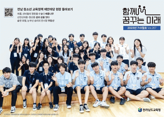 [¹Ìµð¾îÀü³² Á¦°¥´ëÁ¾ ±âÀÚ]Àü¶ó³²µµ±³À°Ã»ÀÌ ¹ßÇàÇÏ´Â Àü³²±³À°¼Ò½ÄÁö 'ÇÔ²² ²Þ²Ù´Â ¹Ì·¡' 7+8¿ùÈ£°¡ ³ª¿Ô´Ù. À̹ø È£ ƯÁýÀº Áö³ 7¿ù 13ÀÏ ¿¸° ¡®2023. Àü³² û¼Ò³â ±³À°Á¤Ã¥ Á¦¾È¸¶´ç Åì¾Æº¸±â¡¯·Î, û¼Ò³âµéÀÌ Á÷Á¢ °í¾ÈÇϰí Á¦¾È¡¦