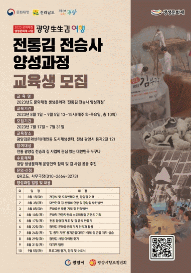 [¹Ìµð¾îÀü³² ÀÓ¼º¿Ï ±âÀÚ]±¤¾ç½ÃÇâÅäû³âȸ´Â Áö³ 17ÀϺÎÅÍ 31ÀϱîÁö »ý»ý¹®ÈÀ¯»ê »ç¾÷ ÀÏȯÀ¸·Î ¡®ÀüÅë±è Àü½Â»ç ¾ç¼º°úÁ¤¡¯ ±³À°»ýÀ» ¸ðÁýÇÑ´Ù°í ¹àÇû´Ù. ¡®ÀüÅë±è Àü½Â»ç ¾ç¼º°úÁ¤¡¯Àº ±¤¾ç½ÃÇâÅäû³âȸ°¡ ÁÖ°üÇÏ´Â 2023³âµµ ¹®È¡¦