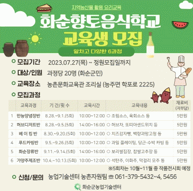 [¹Ìµð¾îÀü³² Á¦°¥´ëÁ¾ ±âÀÚ]ȼø±ºÀº ¿À´Â 27ÀϺÎÅÍ 2023 ȼøÇâÅäÀ½½Ä Àü¹®±³À° ¼ö°»ýÀ» ¸ðÁýÇÑ´Ù°í ¹àÇû´Ù. ¸ðÁý°úÁ¤Àº 6°³ °úÁ¤À¸·Î ¸¸´É ¾ç³äÀå ¹Ý, Çãºê µðÀúÆ® ¹Ý, Á¦°úÁ¦»§(º£ÀÌÅ·) ¹Ý, À½½Ä Á¶°¢(ǪµåÄ«ºù) ¹Ý, ȼø Àå·ù ¹Ý, ¡¦