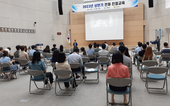[¹Ìµð¾îÀü³² Á¦°¥´ëÁ¾ ±âÀÚ]Àü¶ó³²µµ´Â ¡®µµ¹Î°ø°¨ ¹Î¿øÇàÁ¤ ±¸Çö¡¯À» À§ÇØ Àü Á÷¿øÀ» ´ë»óÀ¸·Î 2023³â »ó¹Ý±â ÀüÈ Ä£Àý±³À°À» Áö³ 25ÀÏ µµÃ»¿¡¼ ½Ç½ÃÇß´Ù. ÁÖ¿ä ±³À° ³»¿ëÀº ÀüÈ Ä£Àýµµ Çâ»óÀ» À§ÇÑ Ä£Àý ±âº»±³À°À» ºñ·ÔÇØ °íÃæ ¹Î¡¦