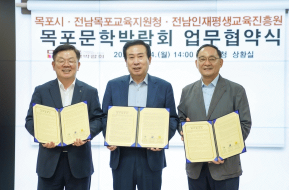 [¹Ìµð¾îÀü³² °í±Ô¼® ±âÀÚ]¸ñÆ÷½Ã°¡ Áö³ 24ÀÏ ¡®2023 ¸ñÆ÷¹®Çйڶ÷ȸ¡¯ÀÇ ¼º°ø °³ÃÖ¸¦ À§ÇØ Àü³²¸ñÆ÷±³À°Áö¿øÃ», Àü³²ÀÎÀçÆò»ý±³À°ÁøÈï¿ø°ú ¾÷¹« Çù¾àÀ» ü°áÇß´Ù. Çù¾à½ÄÀº ¹ÚÈ«·ü ¸ñÆ÷½ÃÀå, Á¤´ë¼º ¸ñÆ÷±³À°Àå, °í¼®±Ô Àü³²ÀÎÀçÆò»ý±³¡¦