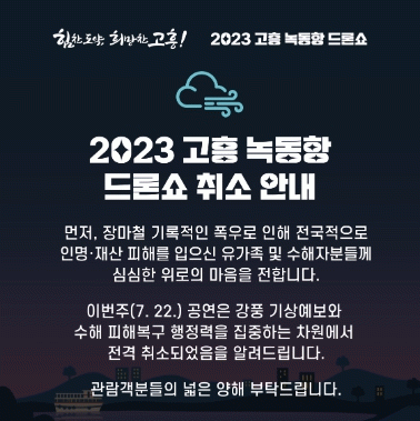 [¹Ìµð¾îÀü³² Á¦°¥´ëÁ¾ ±âÀÚ]°íÈﱺÀÌ ¸ÅÁÖ Åä¿äÀÏ ³ìµ¿Ç× ÀÏ¿ø¿¡¼ »ó¼³ °ø¿¬À¸·Î ÆîÃÄÁö°í ÀÖ´Â ¡®2023 °íÈï ³ìµ¿Ç× µå·Ð¼î¡¯ À̹øÁÖ 22ÀÏ °ø¿¬À» Àü°Ý Ãë¼ÒÇÑ´Ù°í ¹àÇû´Ù. ±ºÀº °ø¿¬ Ãë¼Ò¿¡ ¾Õ¼, À̹ø À帶ö ±â·ÏÀûÀÎ Æø¿ì·Î ÀÎÇØ Àü¡¦