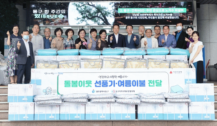 [¹Ìµð¾îÀü³² ±èÁ¤¿ì ±âÀÚ]±¤ÁÖ µ¿±¸´Â À̸¥ Æø¿°À¸·Î ¾î·Á¿òÀ» °Þ°í ÀÖ´Â µ¹º½ÀÌ¿ôÀ» ´ë»óÀ¸·Î °Ç°ÇÏ°í ½Ã¿øÇÑ ¿©¸§³ª±â¸¦ À§ÇÑ ¼±Ç³±â¡¤¿©¸§ ÀÌºÒ Áö¿ø »ç¾÷À» ÃßÁøÇß´Ù°í 19ÀÏ ¹àÇû´Ù. µ¿±¸¿Í µ¿±¸Áö¿ª»çȸº¸ÀåÇùÀÇü°¡ °øµ¿ ÃßÁøÇÏ¡¦
