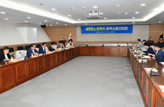 [¹Ìµð¾îÀü³² Á¦°¥´ëÁ¾ ±âÀÚ]±¤ÁÖ½ÃÀÇȸ »õ·Î¿î³ëµ¿Æ¯º°À§¿øÈ¸°¡ 18ÀÏ ½ÃÀÇȸ ´ëȸÀǽǿ¡¼ »õ·Î°íħ ³ëµ¿ÀÚÇùÀÇȸ ¼Ò¼Ó ±ÝȣŸÀÌ¾î »ç¹«Á÷ ³ëÁ¶¿Í Á¦4ȸ Á¤Ã¥¼ÒÅë°£´ãȸ¸¦ °¡Á³´Ù. Áö¿ª ³ëµ¿È¯°æ °³¼±À» À§ÇÑ Á¤Ã¥¼ÒÅë°£´ãȸ¿¡´Â ±ÝȣŸ¡¦