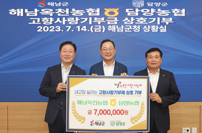 [¹Ìµð¾îÀü³² Á¦°¥´ëÁ¾ ±âÀÚ]ÇØ³²¿Áõ³óÇù°ú ´ã¾ç³óÇùÀº °íÇâ»ç¶û±âºÎÁ¦ÀÇ ¼º°øÀûÀÎ Á¤Âø°ú Áö¿ª °£ »ó»ý¹ßÀüÀ» À§ÇØ °¢ Á¶ÇÕ ÀÓÁ÷¿ø 70¸íÀÇ ¶æÀ» ¸ð¾Æ ¸¶·ÃÇÑ ±âºÎ±Ý 700¸¸¿ø¾¿À» »óÈ£ ±âºÎÇß´Ù. 14ÀÏ ÇØ³²±ºÃ»¿¡¼ ÁøÇàµÈ ±âŹ½Ä¿¡´Â ³ó¡¦