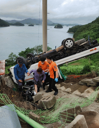 [¹Ìµð¾îÀü³² ÀüÇü¼º ±âÀÚ]¿©¼ö¼Ò¹æ¼°¡ 15ÀÏ ¿ÀÀü 6½Ã°æ ÈÁ¤¸é Á¶¹ßµµ¿¡¼ 1Åæ Æ®·° ´Üµ¶ ±³Åë»ç°í¸¦ Á¢¼ö ¹Þ°í 119±¸Á¶´ë¿Í ±¸±Þ´ë°¡ ½Å¼ÓÇÏ°Ô Ã⵿Çß´Ù »ç°íÇöÀå¿¡´Â 1Åæ Æ®·°ÀÌ °¡µå·¹ÀÏÀ» Ãæµ¹ÇÏ°í ºñÅ»¸é ¾Æ·¡·Î Ãß¶ôÇÏ¿© Àüº¹µÈ ¡¦