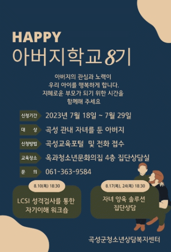 [¹Ìµð¾îÀü³² Á¦°¥´ëÁ¾ ±âÀÚ]°î¼º±ºÀÌ °î¼º±ºÃ»¼Ò³â»ó´ãº¹Áö¼¾ÅÍ¿¡¼ ¿À´Â 18ÀϺÎÅÍ 29ÀϱîÁö ¾Æ¹öÁö 20¸íÀ» ´ë»óÀ¸·Î¡®ÇູÇÑ ¾Æ¹öÁö Çб³¡¯ Âü°¡ÀÚ¸¦ ¸ðÁýÇÑ´Ù. ¡®ÇູÇÑ ¾Æ¹öÁö Çб³¡¯´Â Áö¿ª ³» ÀÚ³àµé µÐ ¾Æ¹öÁö 20¸íÀ» ´ë»óÀ¸·Î ¡¦