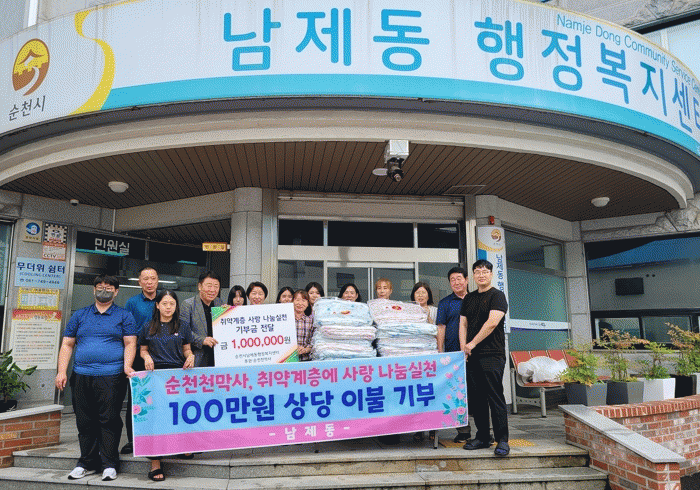 [¹Ìµð¾îÀü³² ÀÓ¼º¿Ï ±âÀÚ]¼øÃµ½Ã ³²Á¦µ¿Àº Áö³ 12ÀÏ ¼øÃµÃµ¸·»ç°¡ Æø¿°¿¡ Ãë¾àÇÑ ¾î¸£½ÅÀ» Áö¿øÇÏ°í ½Í´Ù¸ç ¿©¸§ ÀÌºÒ 20ä(100¸¸¿ø »ó´ç)¸¦ ±âŹÇß´Ù°í ¹àÇû´Ù. À̹ø ÈÄ¿øÀº ³²Á¦µ¿À¸·Î »õ·Î ºÎÀÓÇÑ À̰æÈñ µ¿Àå°ú »ó°¡¹ø¿µÈ¸ ȸ¿øµéÀÇ¡¦