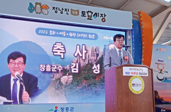 [¹Ìµð¾îÀü³² Á¦°¥´ëÁ¾ ±âÀÚ]Á¤³²Áø ÀåÈï Åä¿ä½ÃÀåÀÌ °³Àå 18ÁÖ³â ¸Â¾Æ ¡®¸íǰ½ÃÀ塯À¸·Î »õ·Î¿î µµ¾àÀ» ¾Ë·È´Ù. 1ÀÏ ¿ÀÀü Åä¿ä½ÃÀå ÁÖ¹«´ë¿¡¼ ¿¸° °³Àå 18Áֳ⠱â³ä½Ä¿¡´Â ±è¼º ÀåÈﱺ¼ö¿Í ½ÃÀå »óÀÎ, Áö¿ª¹Î 200¿© ¸íÀÌ Âü¼®Çß´Ù. ½Ä¡¦