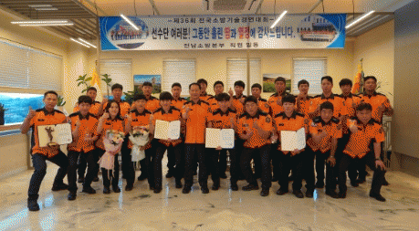 [¹Ìµð¾îÀü³² Á¦°¥´ëÁ¾ ±âÀÚ]Àü³²¼Ò¹æº»ºÎ´Â Á¦36ȸ Àü±¹¼Ò¹æ±â¼ú°æ¿¬´ëȸ¿¡¼ ¿ì¼öÇÑ ¼ºÀûÀ» °ÅµÐ ¼±¼ö´Ü¿¡°Ô ±× µ¿¾ÈÀÇ ³ë°í¸¦ °Ý·ÁÇÏ´Â ÇØ´Ü½ÄÀ» ÁøÇàÇß´Ù. 27ÀÏ ¼Ò¹æº»ºÎ ÈްԽǿ¡¼ ÁøÇàµÈ ÇØ´Ü½Ä¿¡´Â È«¿µ±Ù ¼Ò¹æº»ºÎÀå, ¼±¼ö´Ü, ¼Ò¡¦