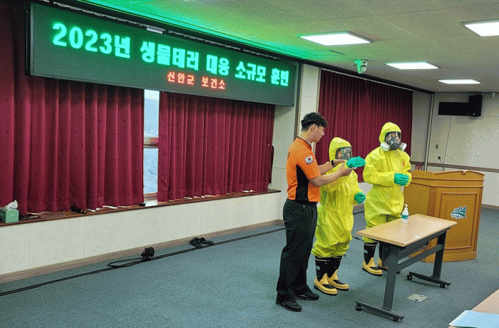 [¹Ìµð¾îÀü³² °í±Ô¼® ±âÀÚ]½Å¾È±ºÀº Áö³ 6¿ù 28ÀÏ ½Å¾È¼Ò¹æ¼, È£³²±ÇÁúº´´ëÀÀ¼¾ÅÍ µî À¯°ü±â°ü °ü°èÀÚ ¹× ½Å¾È±ºÃ» Á÷¿ø 50¿© ¸íÀÌ Âü¿©ÇÑ °¡¿îµ¥ ¡®»ý¹°Å×·¯ ´ëÀÀ ¼Ò±Ô¸ð ÈÆ·Ã¡¯À» ½Ç½ÃÇß´Ù°í ¹àÇû´Ù. È£³²±ÇÁúº´´ëÀÀ¼¾ÅÍ, ½Å¾È¼Ò¹æ¼¡¦