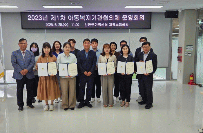 [¹Ìµð¾îÀü³² °í±Ô¼® ±âÀÚ]2023³â Á¦1Â÷ ½Å¾È±º ¾Æµ¿º¹Áö±â°üÇùÀÇü°¡ ½Å¾È±º °¡Á·¼¾ÅÍ¿¡¼ Áö³ 28ÀÏ °³ÃֵƴÙ. À̳¯ ¿î¿µÈ¸ÀÇ¿¡¼´Â ½Å±ÔÀ§¿øµé¿¡°Ô À§ÃËÀåÀ» ¼ö¿©ÇßÀ¸¸ç, À§¿øÀåÀÎ ±³À°º¹Áö°ú ±èÇØ¼® °úÀåÀº À§¿øµé¿¡°Ô ¾ÕÀ¸·Î ¾Æµ¿º¹Áö¡¦