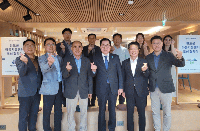 [¹Ìµð¾îÀü³² Á¦°¥´ëÁ¾ ±âÀÚ]¿Ïµµ±º°ú ´ë¿ìÀç´ÜÀÌ Áö³ 27ÀÏ ¿Ïµµ±º ¸¶À½Ä¡À¯¼¾ÅÍ Á¶¼ºÀ» À§ÇÑ ¾÷¹« Çù¾àÀ» ü°áÇß´Ù. Çù¾à½ÄÀº ½Å¿ìö ¿Ïµµ±º¼ö¿Í ±è¼±Çù ´ë¿ìÀç´Ü ÀÌ»çÀåÀÌ Âü¼®ÇÑ °¡¿îµ¥ ´ë¿ìÀç´Ü¿¡¼ ÁøÇàµÆ´Ù. À̹ø Çù¾àÀº Áö¡¦