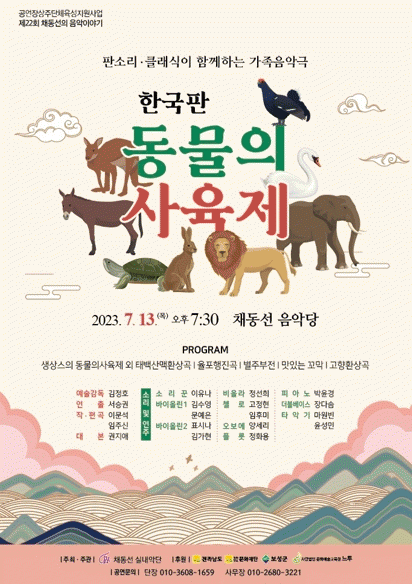 [¹Ìµð¾îÀü³² Á¦°¥´ëÁ¾ ±âÀÚ]º¸¼º±º 䵿¼±½Ç³»¾Ç´ÜÀÌ ¿À´Â 7¿ù 13ÀÏ ¸ñ¿äÀÏ ¿ÀÈÄ 7½Ã 30ºÐ¿¡ 䵿¼±À½¾Ç´ç¿¡¼ 'Çѱ¹ÆÇ, µ¿¹°ÀÇ »çÀ°Á¦' °ø¿¬À» ÇÑ´Ù°í ¹àÇû´Ù. À̹ø¿¡ °ø¿¬ÇÏ´Â 'Çѱ¹ÆÇ, µ¿¹°ÀÇ »çÀ°Á¦'´Â º¸¼ºÀÇ ÆÇ¼Ò¸®¿Í ÇÁ¶û½º À۰