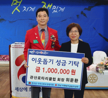 [¹Ìµð¾îÀü³² Á¦°¥´ëÁ¾ ±âÀÚ]ÀåÈﱺ °ü»êÀ¾Àº À§¿îȯ °ü»ê·ÎŸ¸®Å¬·´ ȸÀåÀÌ Áö³ 24ÀÏ ÃëÀÓ½ÄÀ» ±â³äÇØ ÀÌ¿ôµ½±â ¼º±Ý 100¸¸¿øÀ» ±âŹÇß´Ù°í ¹àÇû´Ù. À§¿îȯ °ü»ê·ÎŸ¸®Å¬·´ ȸÀåÀº 2020³âºÎÅÍ ¸Å³â 100¸¸¿ø¾¿ ±âŹÇÏ¿© Áö¿ª ³» º¹Áö»ç°¢¡¦