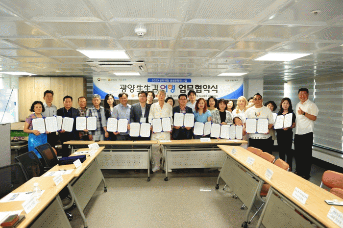 [¹Ìµð¾îÀü³² ÀÓ¼º¿Ï ±âÀÚ]±¤¾ç½ÃÇâÅäû³âȸ´Â Áö³ 16ÀÏ ÅÂÀε¿ µµ½ÃÀç»ý ¾î¿ï¸²¼¾ÅÍ¿¡¼ 2023³â ¹®ÈÀçû »ý»ý¹®ÈÀç »ç¾÷ ¡®±¤¾ç ßæßæ ±è ¿©Ç࡯ÀÇ È¿À²Àû »ç¾÷ÃßÁøÀ» À§ÇÑ ¾÷¹«Çù¾à½ÄÀ» °¡Á³´Ù. ±¤¾ç½Ã°¡ ÁÖÃÖÇÏ°í ±¤¾ç½ÃÇâÅäû³âȸ°¡¡¦