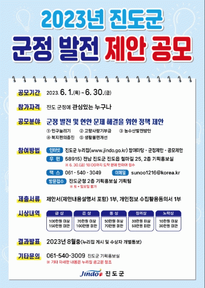 [¹Ìµð¾îÀü³² Á¦°¥´ëÁ¾ ±âÀÚ]Áøµµ±ºÀÌ Ã¢ÀÇÀûÀÎ ¾ÆÀ̵ð¾î¸¦ ¹ß±¼ÇØ ±ºÁ¤¿¡ Àû±Ø ¹Ý¿µÇϰíÀÚ 2023³â ±ºÁ¤¹ßÀü Á¦¾ÈÀ» ¿À´Â 30ÀϱîÁö °ø¸ðÇÑ´Ù. À̹ø °ø¸ð´Â »ýȰ Àα¸ À¯ÀÔ ¹æ¾È°ú °íÇâ»ç¶û±âºÎÁ¦ Ȱ¼ºÈ ¹æ¾È µî ±ºÁ¤¹ßÀü°ú Çö¾È ¹®Á¦ ÇØ¡¦