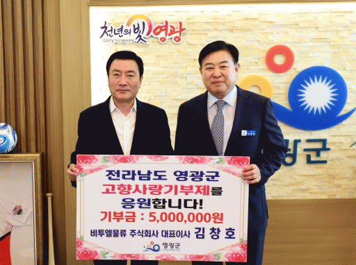 [¹Ìµð¾îÀü³² Á¦°¥´ëÁ¾ ±âÀÚ]¢ßºñÅõ¿¤¹°·ù ±èâȣ ´ëÇ¥À̻簡 Áö³ 16ÀÏ ¿µ±¤±º¼ö½ÇÀ» ¹æ¹®ÇÏ¿© °íÇâ»ç¶û±âºÎ±Ý ÃÖ°í¾×ÀÎ 5¹é¸¸ ¿øÀ» ±âºÎÇß´Ù. 2007³â ¼³¸³µÇ¾î ¿ÃÇØ 17³â°¸¦ ¸ÂÀÌÇÑ ¢ßºñÅõ¿¤¹°·ù´Â ȹ°¿î¼Û Áß°³, ´ë¸® ¹× °ü·Ã ¼ºñ½º¡¦
