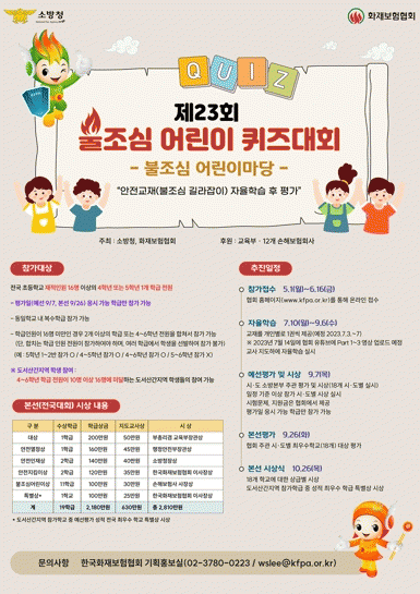 [¹Ìµð¾îÀü³² Á¦°¥´ëÁ¾ ±âÀÚ]Áøµµ¼Ò¹æ¼´Â °ü³» ÃʵîÇб³ 4¤ý5ÇгâÀ» ´ë»óÀ¸·Î¡®Á¦23ȸ ºÒÁ¶½É ¾î¸°ÀÌ ¸¶´ç¡¯¿¹¼± Âü°¡ ÇбÞÀ» ¸ðÁýÇÑ´Ù°í ¹àÇû´Ù. ¼Ò¹æÃ»°ú Çѱ¹ÈÀ纸ÇèÇùȸ°¡ °øµ¿À¸·Î ÁÖÃÖÇÏ´Â À̹ø Çà»ç´Â Àڶ󳪴 ¾î¸°ÀÌ¿¡°Ô ÈÀ硦
