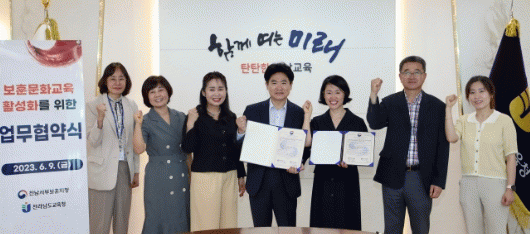 [¹Ìµð¾îÀü³² Á¦°¥´ëÁ¾ ±âÀÚ]Àü¶ó³²µµ±³À°Ã»°ú Àü³²¼ºÎº¸ÈÆÁöûÀº È£±¹ º¸ÈÆÀÇ ´ÞÀ» ¸Â¾Æ 6¿ù 9ÀÏ Àü¶ó³²µµ±³À°Ã»¿¡¼ ³ª¶ó»ç¶û ±³À°À» À§ÇÑ ¾÷¹«Çù¾àÀ» ¸Î¾ú´Ù. À̳¯ Çù¾à½ÄÀº ±è´ëÁß Àü³²±³À°°¨°ú ¹Ú°æ¹Ì Àü³²¼ºÎº¸ÈÆÁöûÀåÀ» ºñ·ÔÇÑ¡¦