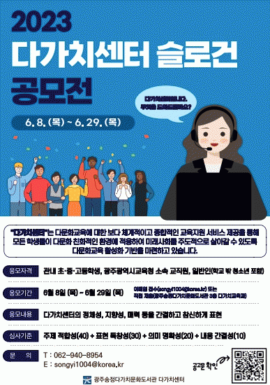 [¹Ìµð¾îÀü³² Á¦°¥´ëÁ¾ ±âÀÚ]±¤ÁÖ¼ÛÁ¤´Ù°¡Ä¡¹®Èµµ¼°üÀÌ ±¤Áֽñ³À°Ã» ´Ù¹®È ±³À° È«º¸¿Í ´Ù¹®È Ä£ÈÀûÀΠȯ°æ Á¶¼ºÀ» À§ÇÑ ¡®´Ù°¡Ä¡¼¾ÅÍ ½½·Î°Ç °ø¸ðÀü¡¯À» °³ÃÖÇÑ´Ù°í 7ÀÏ ¹àÇû´Ù. À̹ø °ø¸ðÀü ÁÖÁ¦´Â ¼ÛÁ¤´Ù°¡Ä¡¹®Èµµ¼°ü ³» ´Ù¹®¡¦