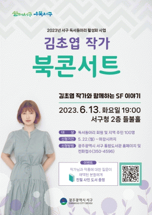 [¹Ìµð¾îÀü³² ±èÁ¤¿ì ±âÀÚ]»ýÈÇÐ Àü°øÀÚÀÌÀÚ SF¼Ò¼³°¡·Î À¯¸íÇÑ ±èÃÊ¿± ÀÛ°¡°¡ ±¤ÁÖ ¼±¸¹ÎÀ» ¸¸³´Ù. ±¤ÁÖ±¤¿ª½Ã ¼±¸´Â ¿À´Â 13ÀÏ ¿ÀÈÄ 7½Ã ¼±¸Ã» µéºÒȦ¿¡¼ ±èÃÊ¿± ÀÛ°¡ ÃÊû ºÏ ÄܼƮ¸¦ °³ÃÖÇÑ´Ù°í ¹àÇû´Ù. ±è ÀÛ°¡´Â 2017³â ¡¦