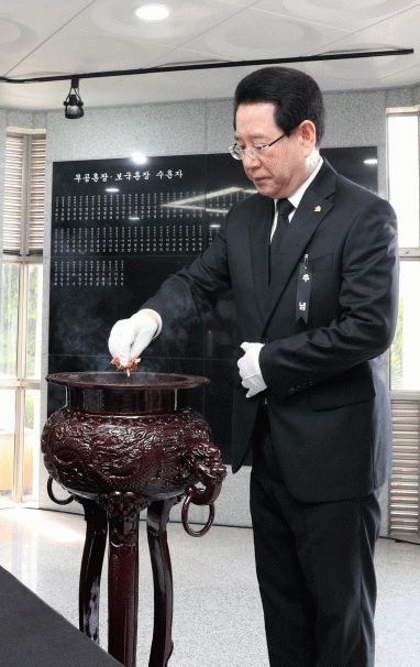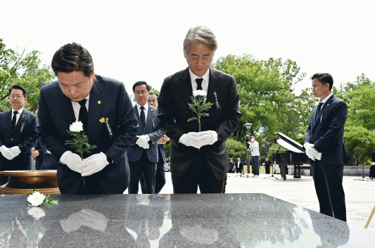 [¹Ìµð¾îÀü³² ±èÁ¤¿ì ±âÀÚ]±èÀ̰ ¼±¸Ã»ÀåÀº 6ÀÏ ¿ÀÀü ±¤ÁÖ°ø¿ø ÇöÃæÅ¾ ¾Õ¿¡¼ °ÅÇàµÈ Á¦68ȸ ÇöÃæÀÏ Ãß³ä½Ä¿¡ Âü¼®ÇØ ¼ø±¹¼±¿°ú È£±¹¿µ·É¿¡ ÇåÈÇϰí À§ÆÐºÀ¾È¼Ò¿¡ ¾ÈÄ¡µÈ À§ÆÐ¸¦ ´ÛÀ¸¸ç ¼þ°íÇÑ Èñ»ýÁ¤½ÅÀ» ±â·È´Ù.