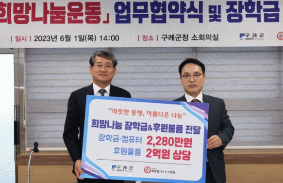 [¹Ìµð¾îÀü³² Á¦°¥´ëÁ¾ ±âÀÚ]Àü³² ±¸·Ê±ºÀº Áö³ 1ÀÏ ±ºÃ» ¼ÒȸÀǽǿ¡¼ (»ç)Èñ¸ÁÀ»³ª´©´Â»ç¶÷µé°ú ¡®Èñ¸Á ³ª´® ¿îµ¿¡¯ ¾÷¹«Çù¾à ¹× ÀåÇÐ±Ý Àü´Þ½ÄÀ» °¡Á³´Ù°í ¹àÇû´Ù. À̹ø Çù¾àÀ» ÅëÇØ (»ç)Èñ¸ÁÀ»³ª´©´Â»ç¶÷µéÀº ±¸·Ê±º °ÅÁÖ ¾Æµ¿¡¤Ã»¼Ò¡¦