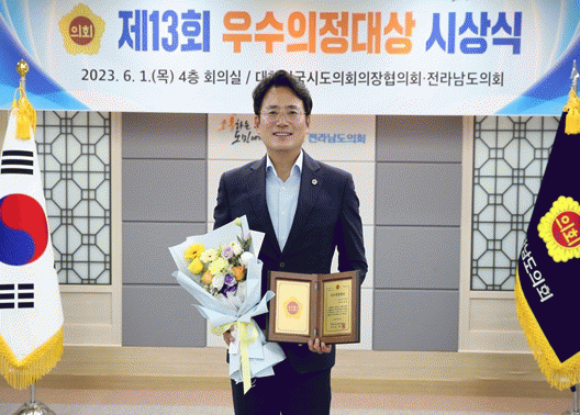 [¹Ìµð¾îÀü³² Á¦°¥´ëÁ¾ ±âÀÚ]Àü³²µµÀÇȸ º¸°Çº¹Áöȯ°æÀ§¿øÈ¸ Ãֹ̼÷ ÀÇ¿ø(´õºÒ¾î¹ÎÁִ硤½Å¾È2)Àº 1ÀÏ, ´ëÇѹα¹½ÃµµÀÇȸÀÇÀåÇùÀÇȸ¿¡¼ ÁÖ°üÇÏ´Â ¡®Á¦13ȸ ¿ì¼öÀÇÁ¤´ë»ó¡¯¿¡¼ ¿ì¼öÀÇ¿øÀ¸·Î ¼±Á¤µÆ´Ù. ¿ÃÇØ 13ȸ°¸¦ ¸ÂÀº ¿ì¼öÀÇÁ¤´ë»óÀº¡¦